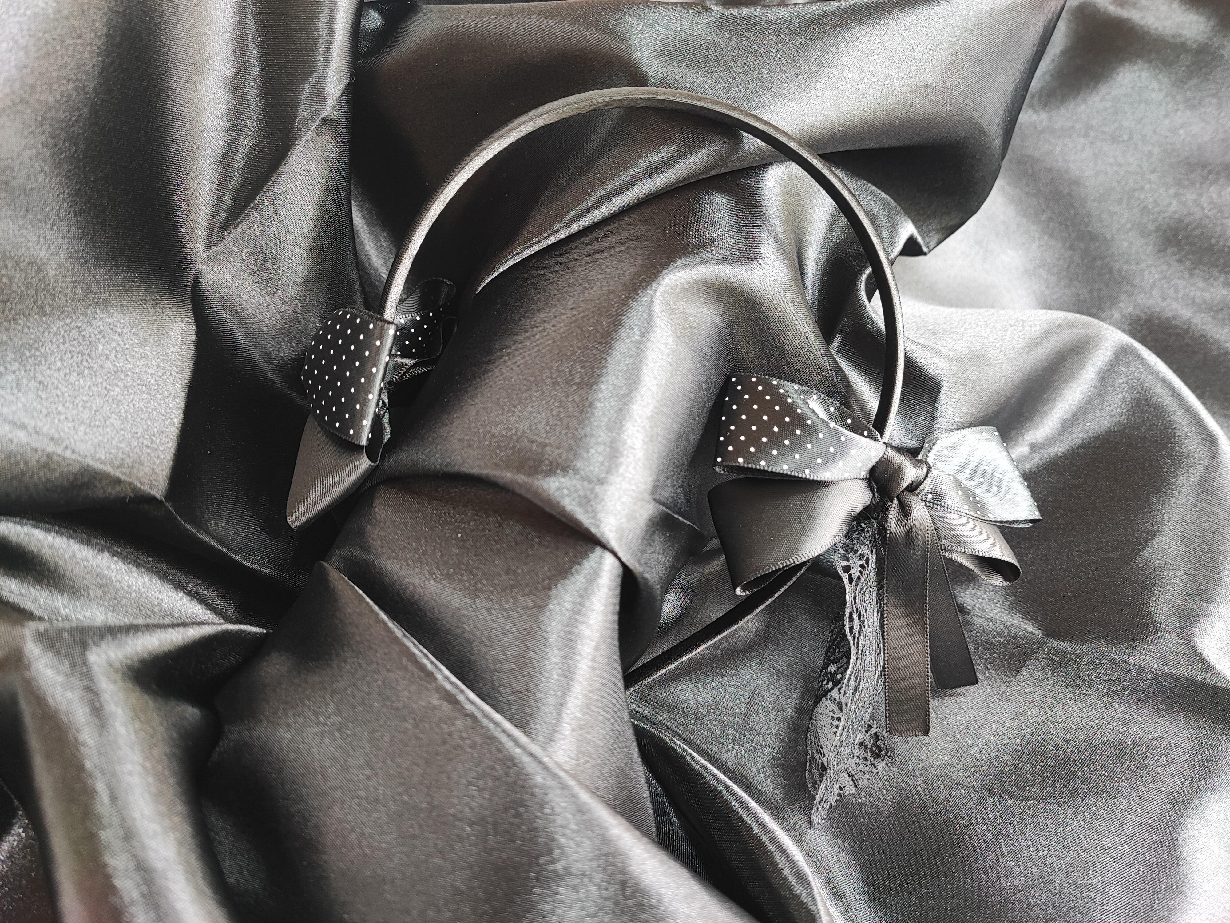 黒のリボンに、繊細な黒レースを重ねたツインテール飾り用のカチューシャ。
