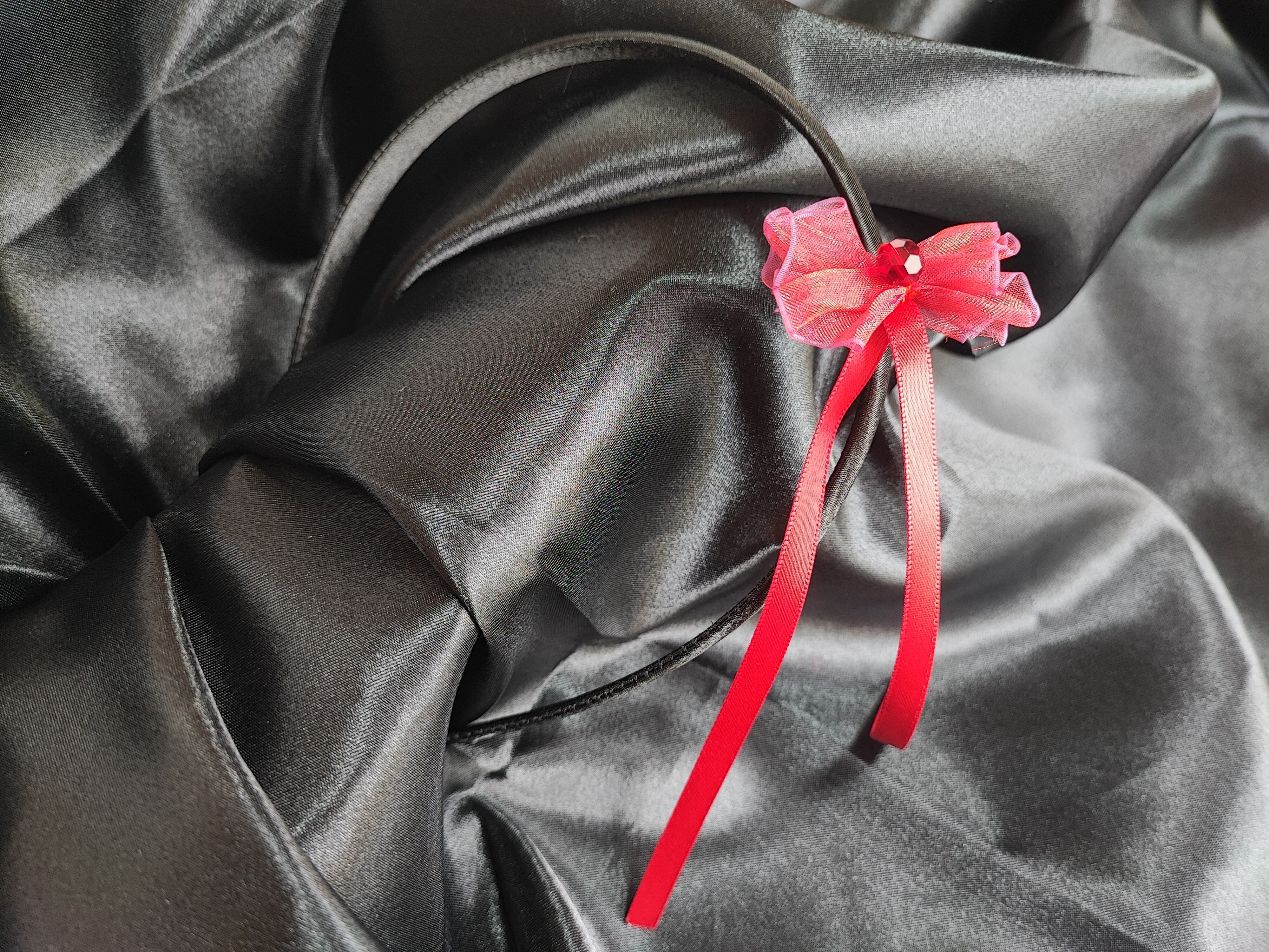 揺れるリボンが残す余韻とともに、あなたの装いに深紅の魔法を。